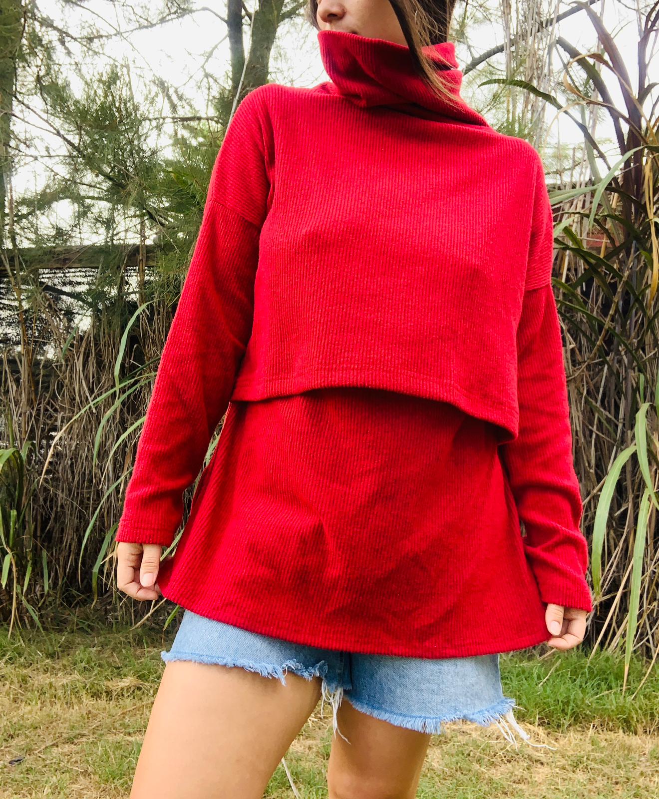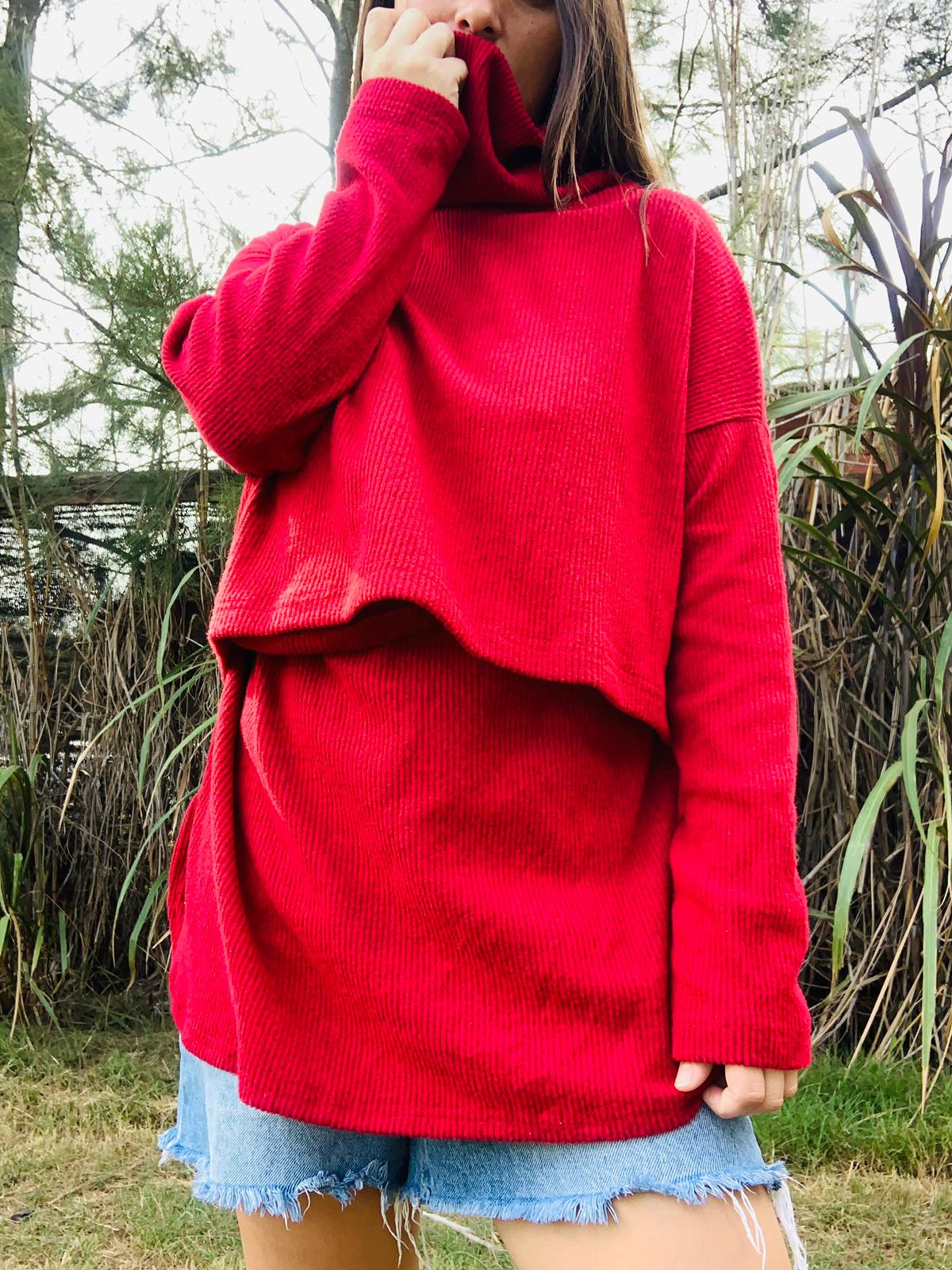 Este buzo maternal está confeccionado en tela de morley de color rojo. Es ideal para madres lactantes ya que cuenta con una abertura discreta diseñada para facilitar la lactancia materna sin necesidad de retirar el buzo. Su comodidad y practicidad lo hacen perfecto para esta etapa tan importante. El talle es único.