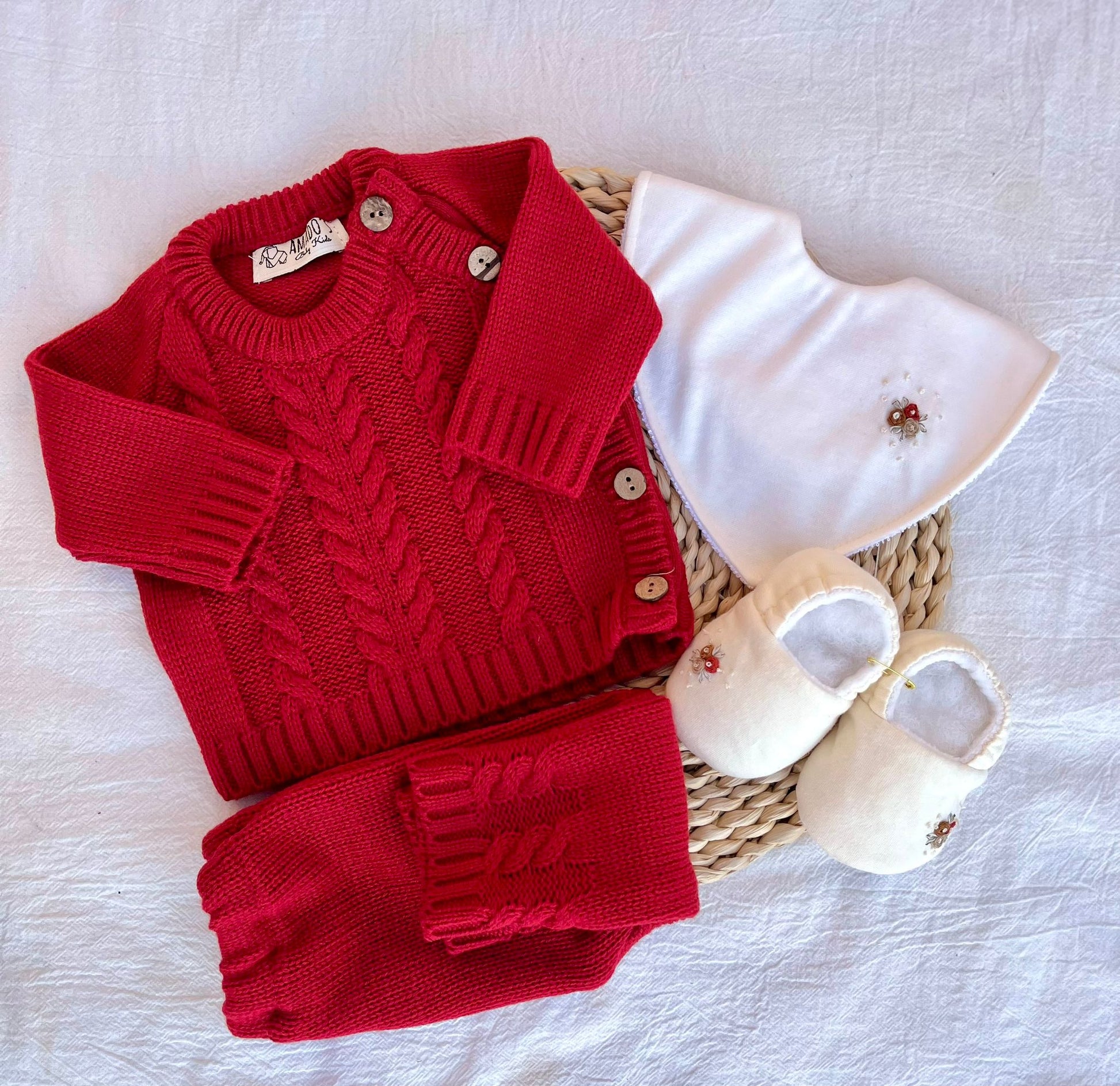 ¡Viste a tu bebé con estilo y comodidad con nuestro conjunto en dralón rojo! Incluye un pantalón y un buzito perfectos para bebés recién nacidos hasta los 3 meses. ¡Hecho con el material más suave, mantendrá a tu bebé cálido y cómodo todo el día!