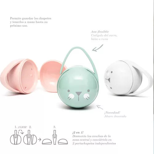¡Mantén los chupetes de tu bebé siempre limpios y a mano con el Portachupetes Duo Duo Suavinex! Con capacidad para 4 chupetes, está diseñado con dos compartimentos separados y una asa flexible para colgarlo en el bolso o el cochecito. ¡Mantén la sonrisa de tu bebé feliz con este práctico portachupetes!