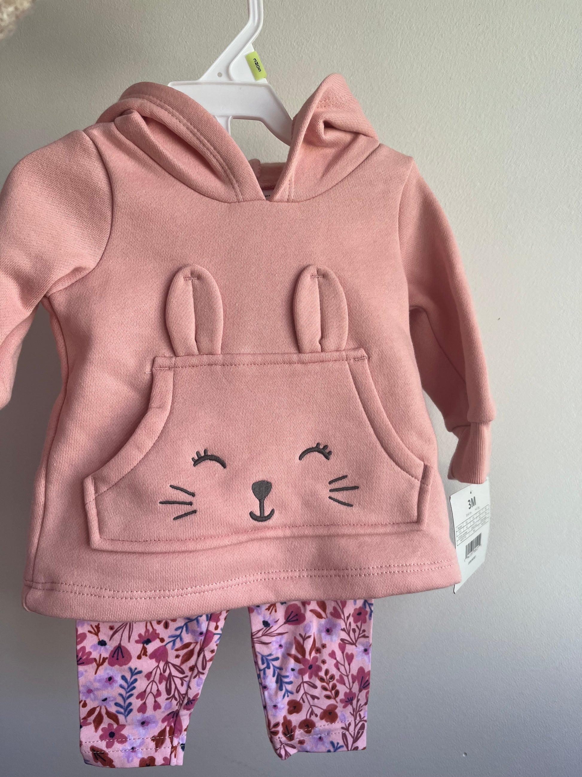 Set 2 piezas calza floreada y buzo de conejo 3M