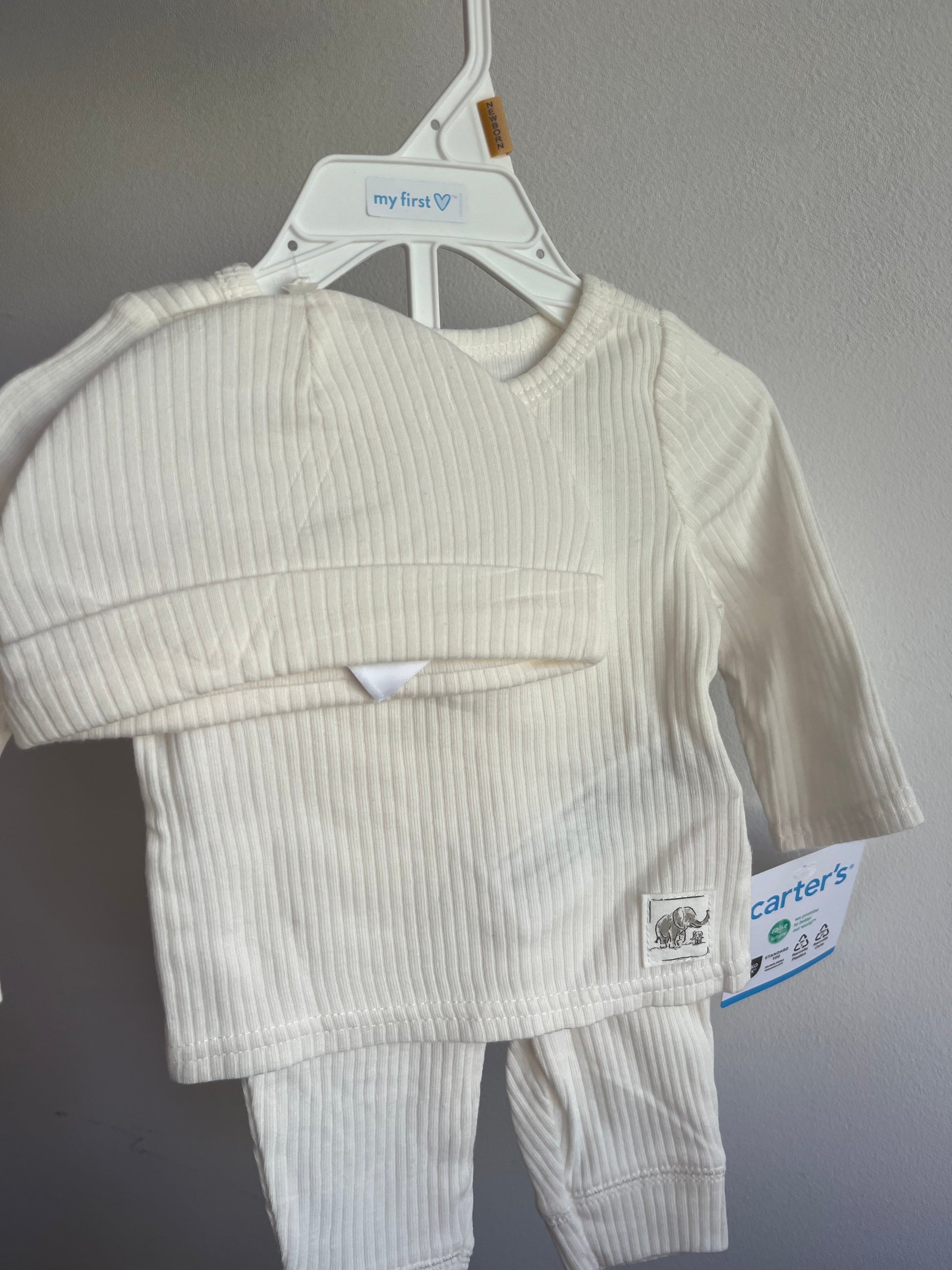 Lleva a tu bebé a la moda con este set unisex de Carters. Incluye un pantalón, una remera y un gorro de algodón suave para una máxima comodidad. Perfecto para recién nacidos, este set es una excelente opción para mantener a tu bebé cómodo y elegante al mismo tiempo. ¡Hará que tu bebé se vea y se sienta genial!