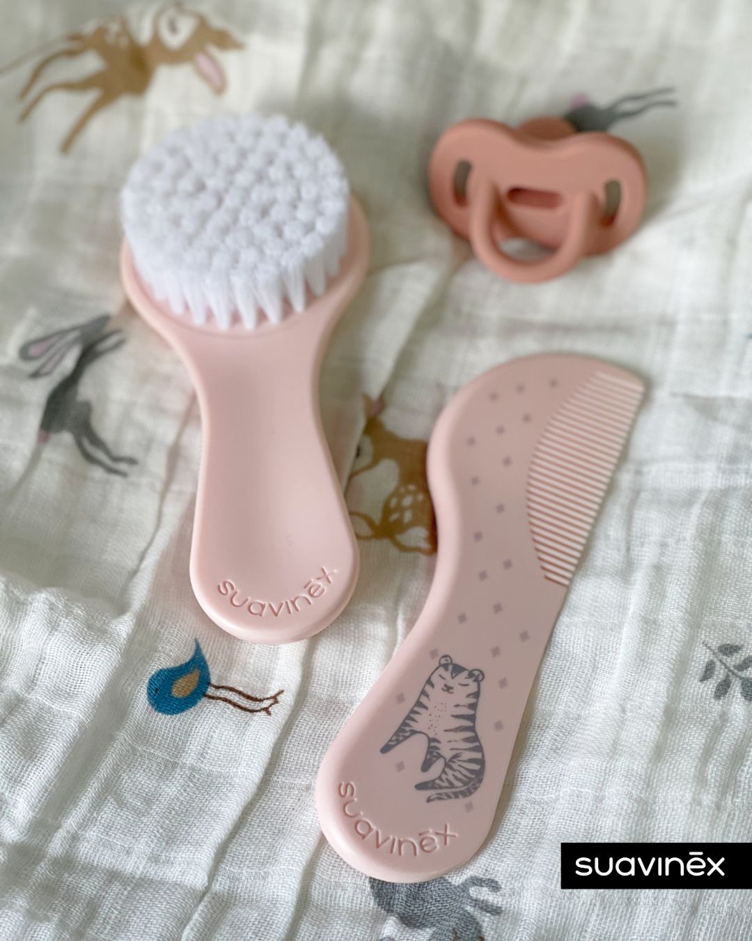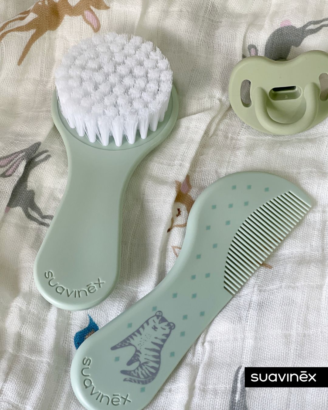 Está pensado para asear y cuidar al bebé sin dañar su delicada piel y cabello, gracias a los extremos redondeados y fibras suaves utilizadas.