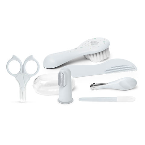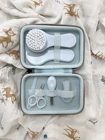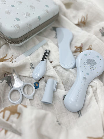 Este Set de Higiene nubes celeste es esencial para tu bebé recién nacido. Incluye un suave cepillo y peine, tijera y cortauñas con punta redondeada para seguridad, lima de cristal y cepillo para limpiar encías con estuche. ¡Mantener a tu bebé limpio y saludable nunca fue tan fácil y seguro! ¡Cuida de tu bebé con este set imprescindible!