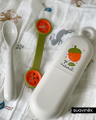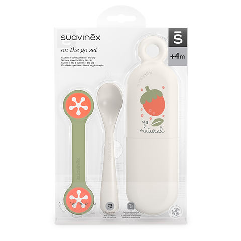 ¡Con el Set On The Go, los paseos nunca serán un problema! Este set incluye una cuchara ergonómica y un práctico portacucharas para que tu bebé pueda comer fuera del hogar sin complicaciones. Además, cuenta con un accesorio de silicona que se convierte en babero para proteger su ropa. ¡Fácil de lavar y llevar a todas partes!