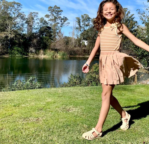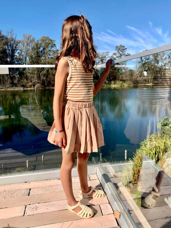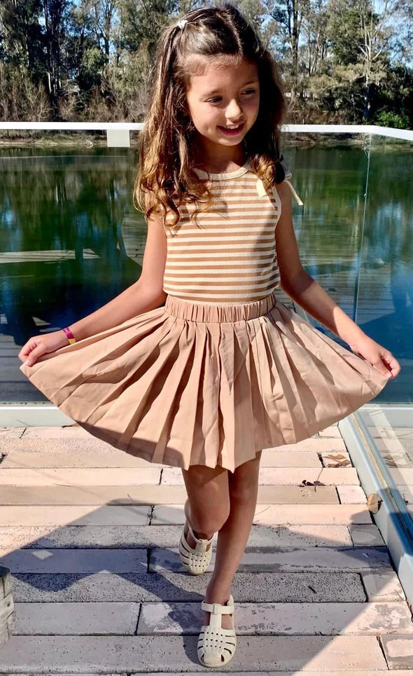 Este set de tenis T3 incluye una pollera y musculosa en colores tierra, ideal para niñas de 3 años. De la colección Little Collections, asegurando calidad y comodidad para las más pequeñas.
