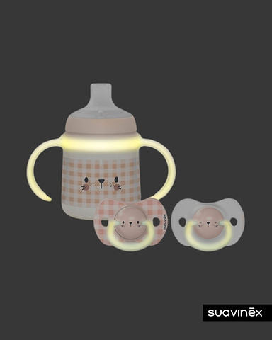 Descubre el Vaso Night and Day azul! Diseñado con una NUEVA tetina de silicona SX PRO con válvula anticólicos para evitar molestias en tu bebé. Ideal para su transición gracias a sus asas intercambiables y capacidad de 150ml. ¡Sus asas brillan en la oscuridad para una experiencia aún más divertida! Edad recomendada: +4 meses.