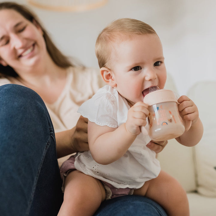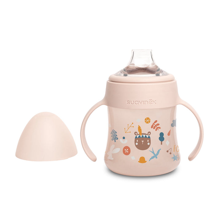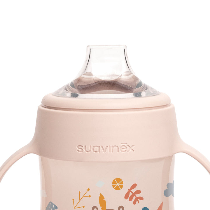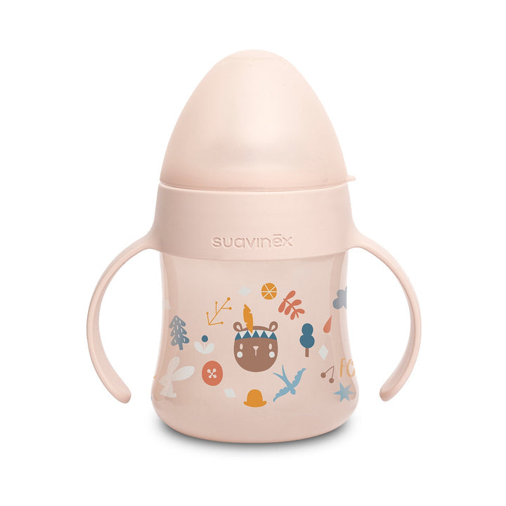 Vaso de entrenamiento con Asas Forest de marca Suavinex con boquilla de silicona para bebés a partir de 4 meses y capacidad para 150 ml. Incorpora asas adaptadas para manitos pequeñas, la rosca con asas es adaptable a cualquier biberón de Suavinex, exceptuando el biberón Zero.Zero. Tetina ideal para facilitar la etapa de tránsito del biberón al vaso. Gracias a su boquilla antiderrame facilita el tránsito de tu bebé de la mamadera al vaso ya que el líquido solo sale cuando tu bebé succiona. Disponible en color amarillo y rosado.